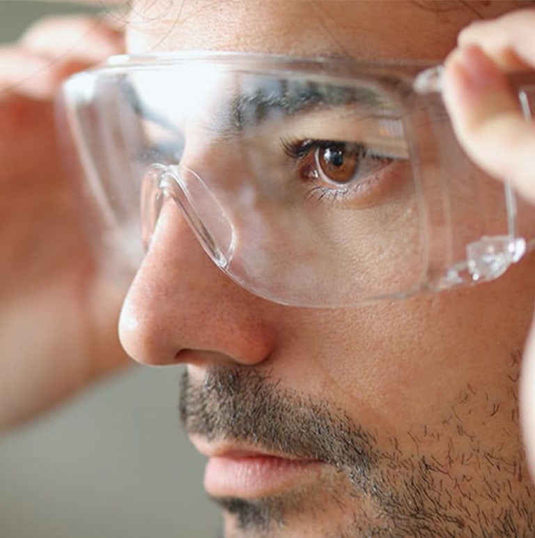 - Don’t remove contact lenses (except in the case of a chemical splash).